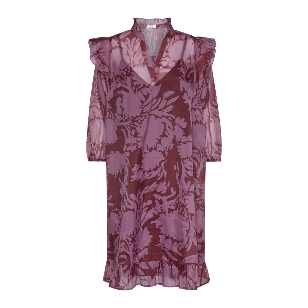 Flot bluse fra Love & Divine. Blusen har V-udskæring samt flæsedetaljer ved skuldrende. Materiale: 100% Polyester. Vaskeanvisning: Vaskes ved 30 grader.