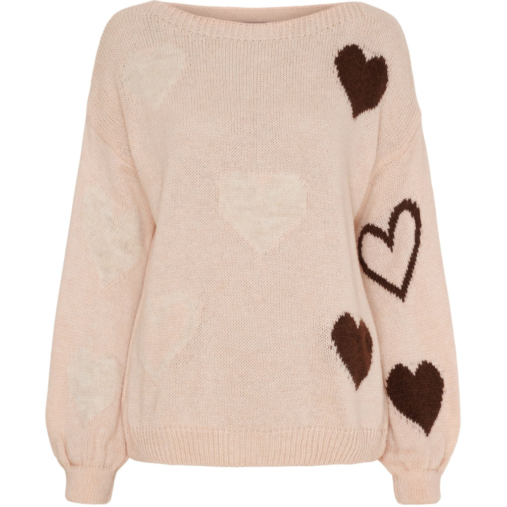 Skøn strik fra Marta. Strikken har en rund hals, lange ærmer, hjerter fordelt fortil og på ærmerne samt ribkant ved alle afslutningerne. Materiale: 50% Akryl. 30% Polyamid. 10% Uld. 10% Lana. Vaskeanvisning: Vaskes ved 30 grader.