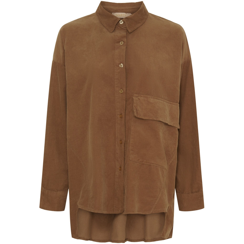 Super fin fløjlsskjorte fra Marta. Skjorten er gennemknapet, længere bagtil og har en stor lomme foran.