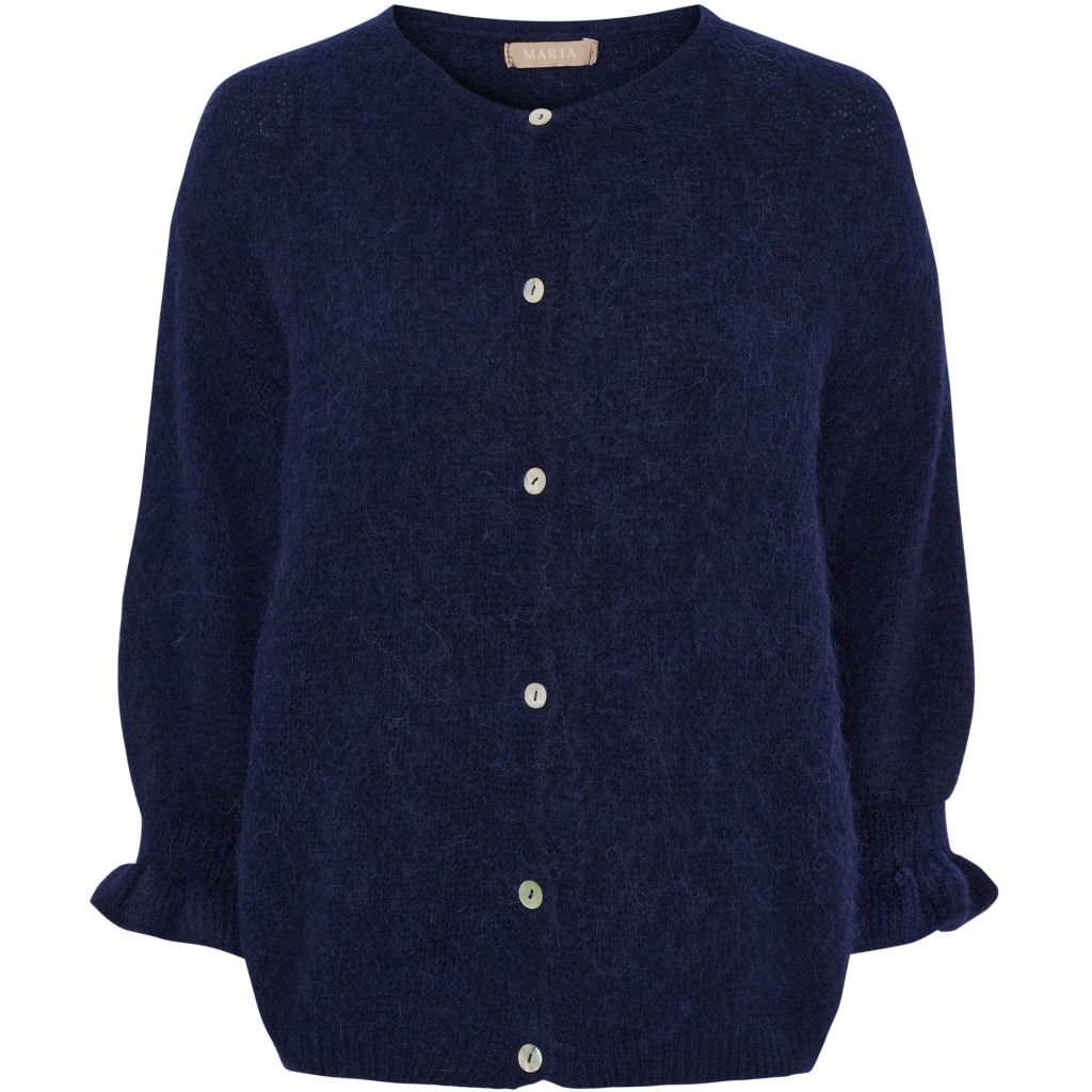 Mega lækker cardigan fra Marta. Cardiganen er gennemknappet, har rund haldudskæring samt fine flæsedetaljer ved ærmerne.
