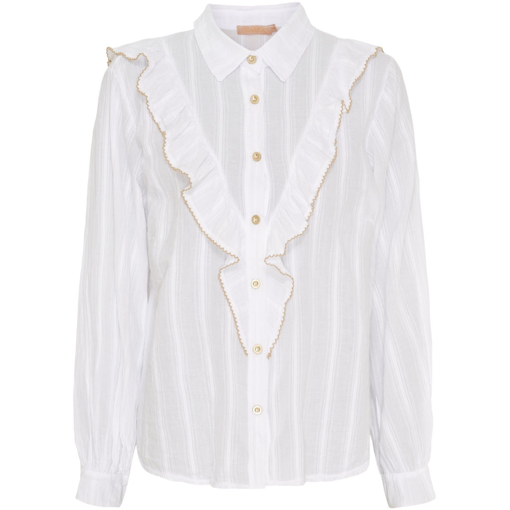 Smuk skjorte fra Marta. Skjorten har skjortekrave, lange ærmer, guldknapper samt en smuk flæsedetalje med guldtråd forenden.