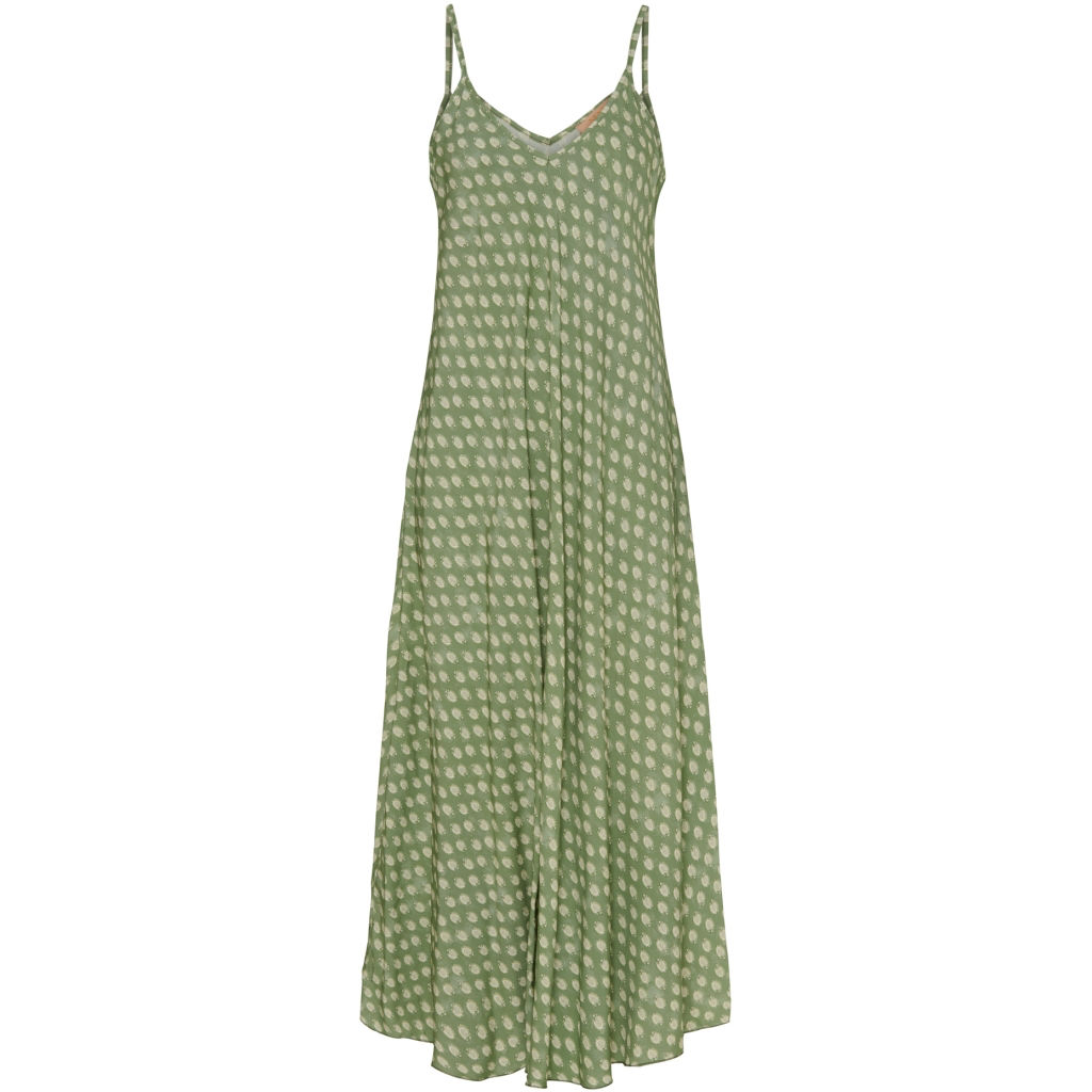 Skøn kjole med spaghettistropper, som sidder lidt til omkring barmen og ellers falder løst.