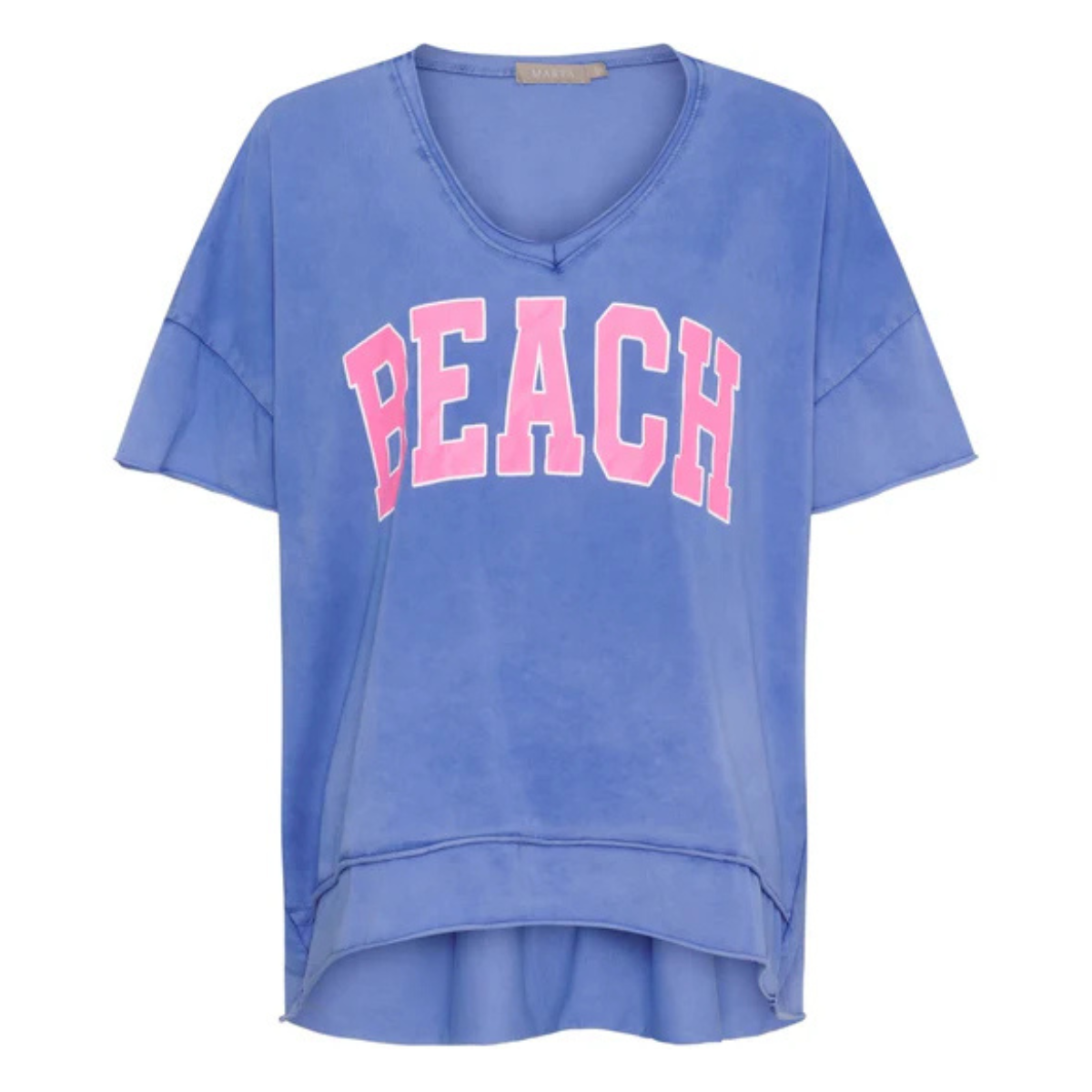 Mega cool t-shirt fra Marta. Den har V-udskæring, korte ærmer, skrift over brystet og derudover er den længere bagtil.