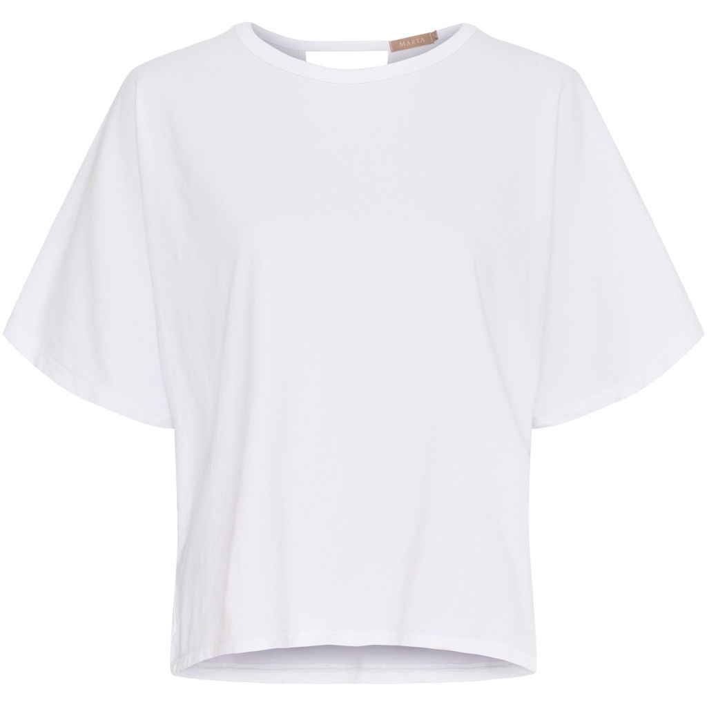 Skøn t-shirt fra Marta. T-shirten har en rund hals, en rummelig pasform samt en smuk detalje på ryggen. Materiale: 95% Bomuld. 5% Elastan. Vaskeanvisning: Vaskes ved 30 grader.