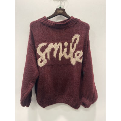 Dejlig strik fra Marta. Strikken har en rund hals, en behagelig pasform, skriften "Smile" over brystet samt ribkant detaljer ved alle afslutingerne.