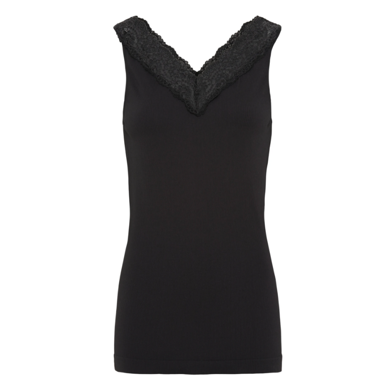 Mega fin top, med blonde ved V-udskæringen både foran og bagved, fra Tim & Simonsen.