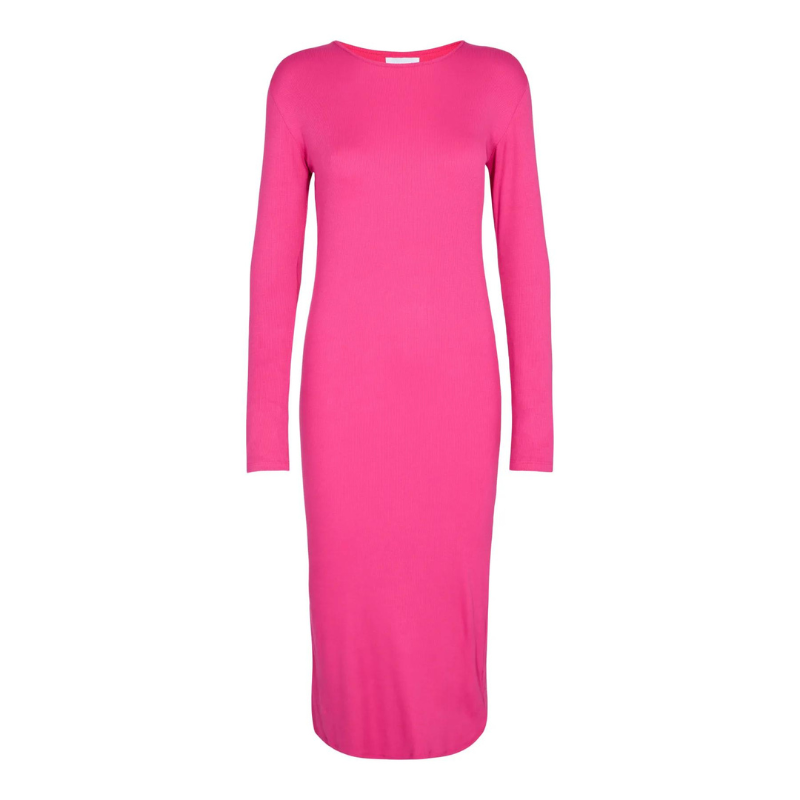 Fin tætsiddende Natalia kjole med stræk i ribbet mønster samt en lille slids i den ene side.