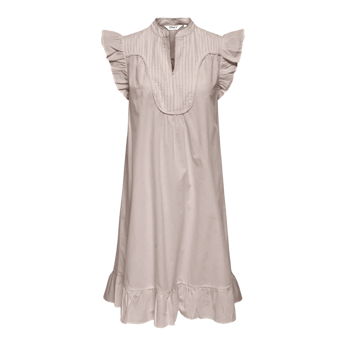 Super sød kjole fra Only. Kjolen har V-udskæring, flæsedetaljer samt en luftig pasform.
