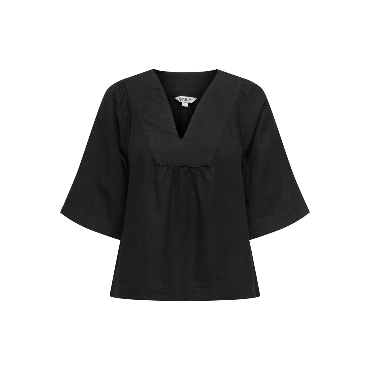 Super fin og luftig top fra Only. Toppen har v-udskæring, 3/4 lange ærmer og små fine detaljer. Materiale: 70% Viskose. 30% Hør. Vaskeanvisning: Vaskes ved 30 grader.
