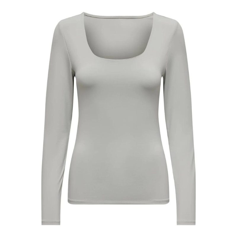 Basic langærmet bluse fra Only. Blusen er vendbar og kan derfor bæres på to forskellige måder. Derudover er den tætsiddende og har godt med stræk.