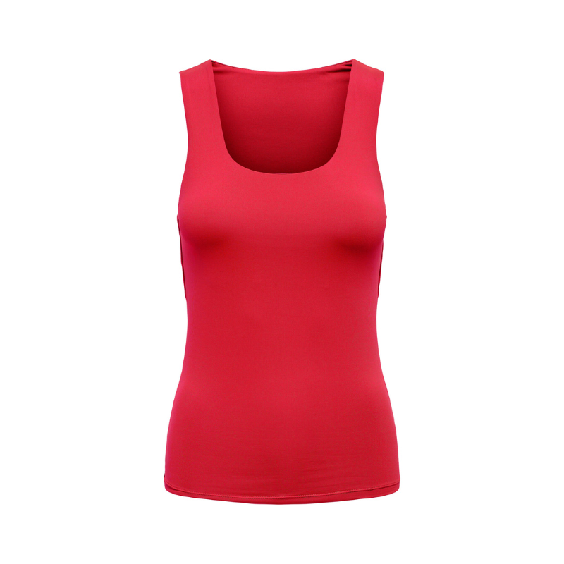 Enkel fin top fra Only. Toppen har brede stropper og rund udskæring. Materiale: 94% Polyamid 6% Elasthan Vaskeanvisning: Vaskes ved 30 grader.