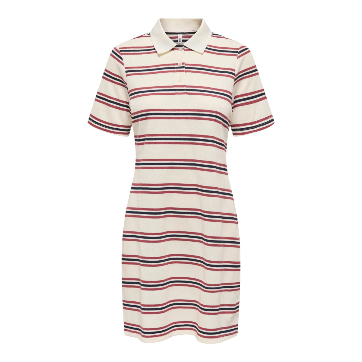 Cool, kort kjole fra Only. Kjolen har polo look, en tætsiddende pasform samt striber.