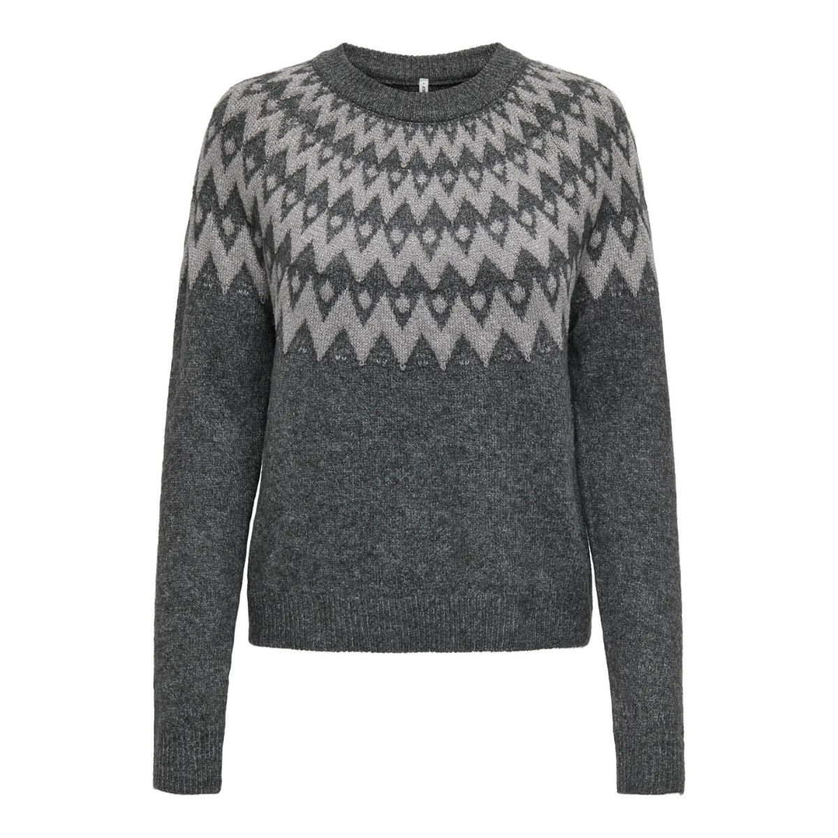 Skøn strik fra Only. Strikken er i en normal pasform, har en rund halsudskæring, et pænt mønster øverst samt ribkant detaljer ved alle afslutninger.