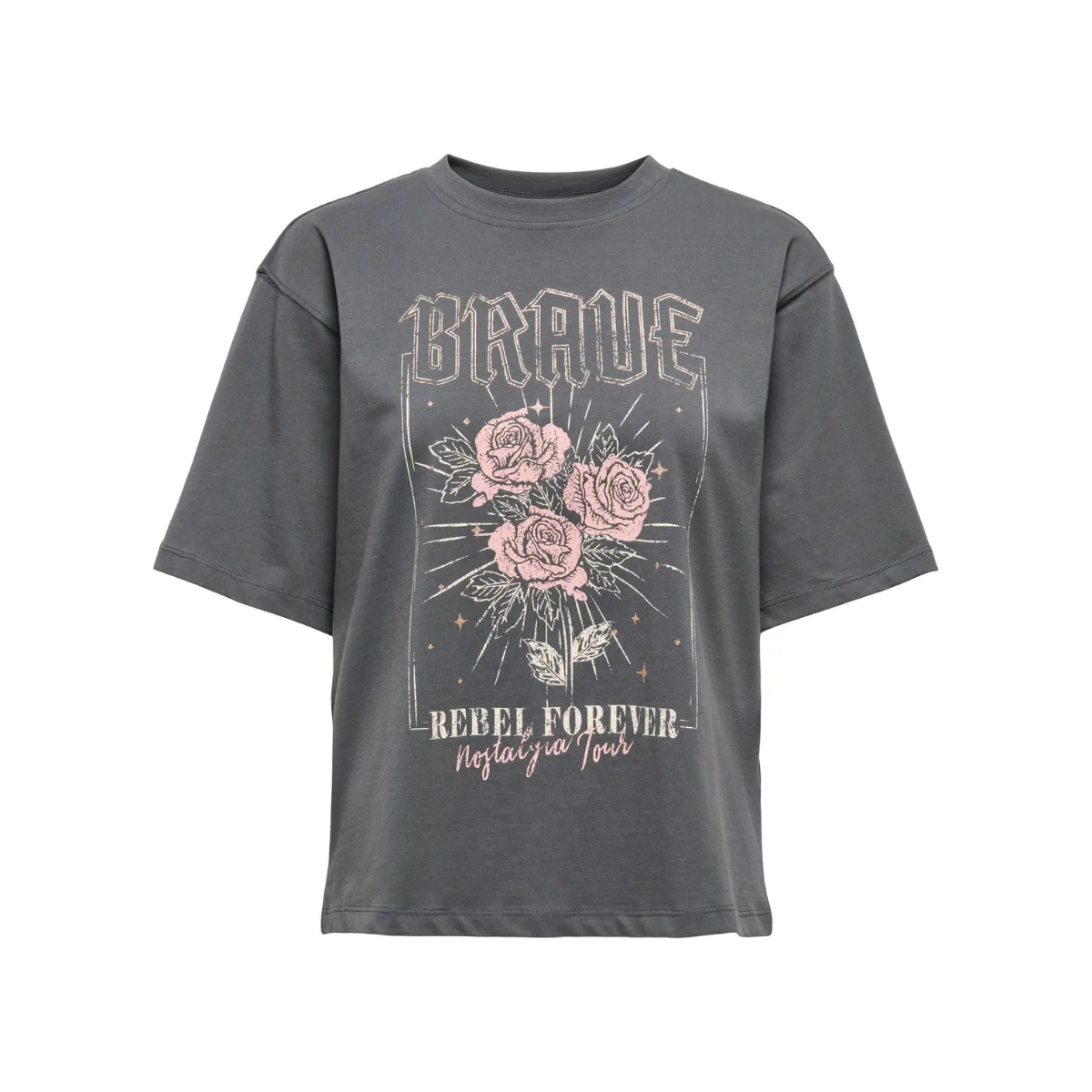 Fed t-shirt fra Only. T-shirten har en rund hals samt et print fortil.