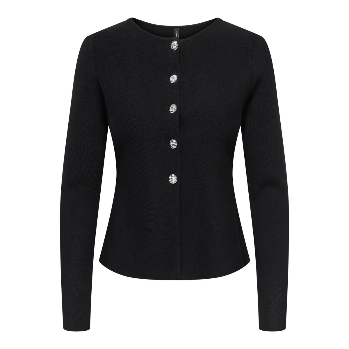 Skøn cardigan fra Liberté. Cardiganen har en rund hals, lange ærmer samt er gennemknappet med smukke og detaljerede sølvknapper.
