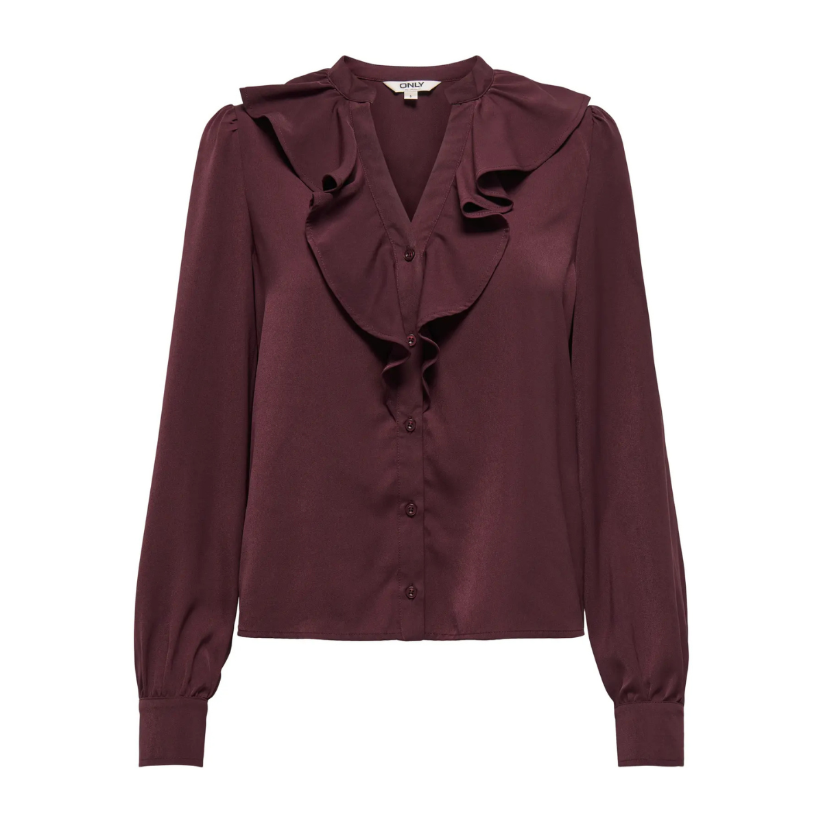 Smuk skjorte fra Only. Skjorten er gennemknappet med V-hals, flæsedetaljer ved kraven samt lange ærmer med en fin manchet afslutning.