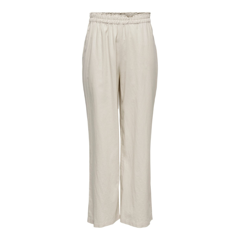 Dejlig, luftig buks i hørblandings materiale. Buksen er høj i taljen med elastik i livet og løs i pasformen. Style den med matchende de skjorter.