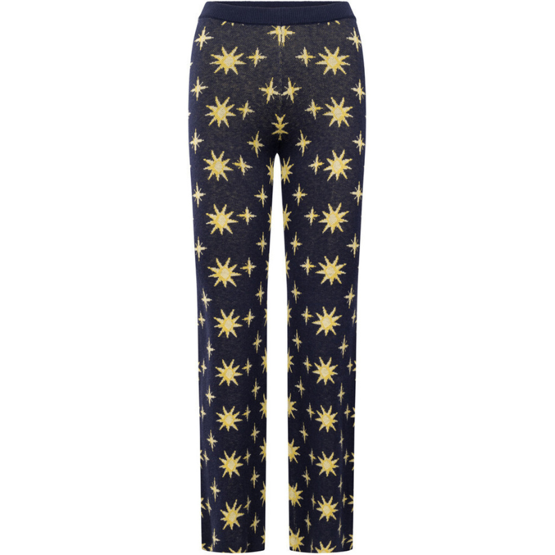 Cool strikbukser fra Hunkøn. Bukserne har elastik i livet og en masse stjerner. Kan styles med den matchende strik.