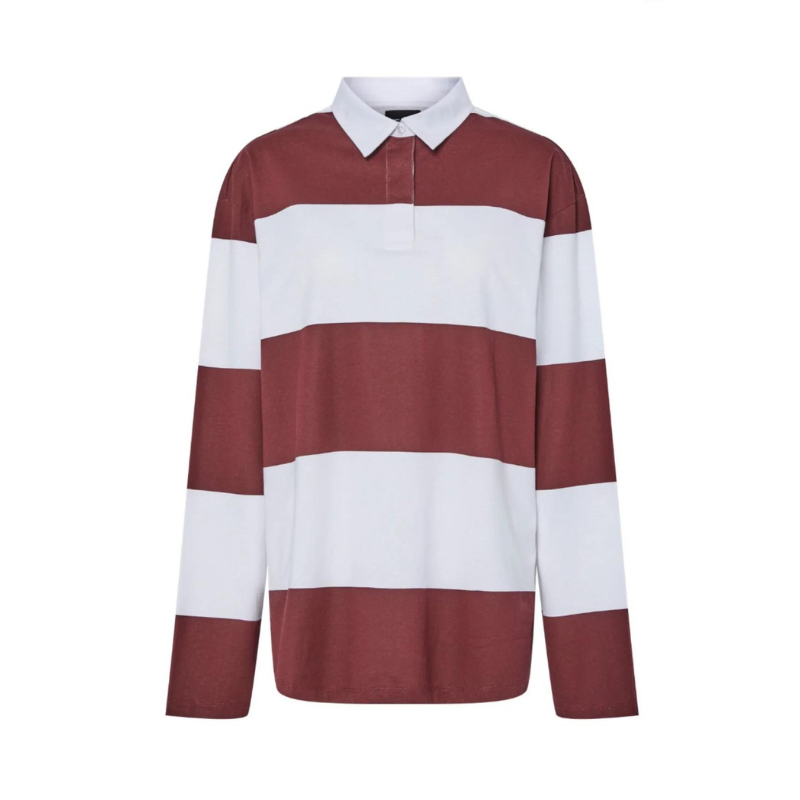 Super fed polo fra Pieces. Poloen er oversized, har skjortekrave og lange ærmer. Materiale: 100% Bomuld. Vaskeanvisning: Vaskes ved 30 grader.
