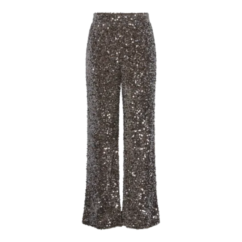 Mega cool blonde/palliet buks fra Pieces. Buksen har elastik i taljen og har brede ben. Kan styles med matchende bluse. Materiale: Yderstof: 97% Polyester. 3% Elastan. Lining: 100% Polyester. Vaskeanvisning Vaskes ved 30 grader.
