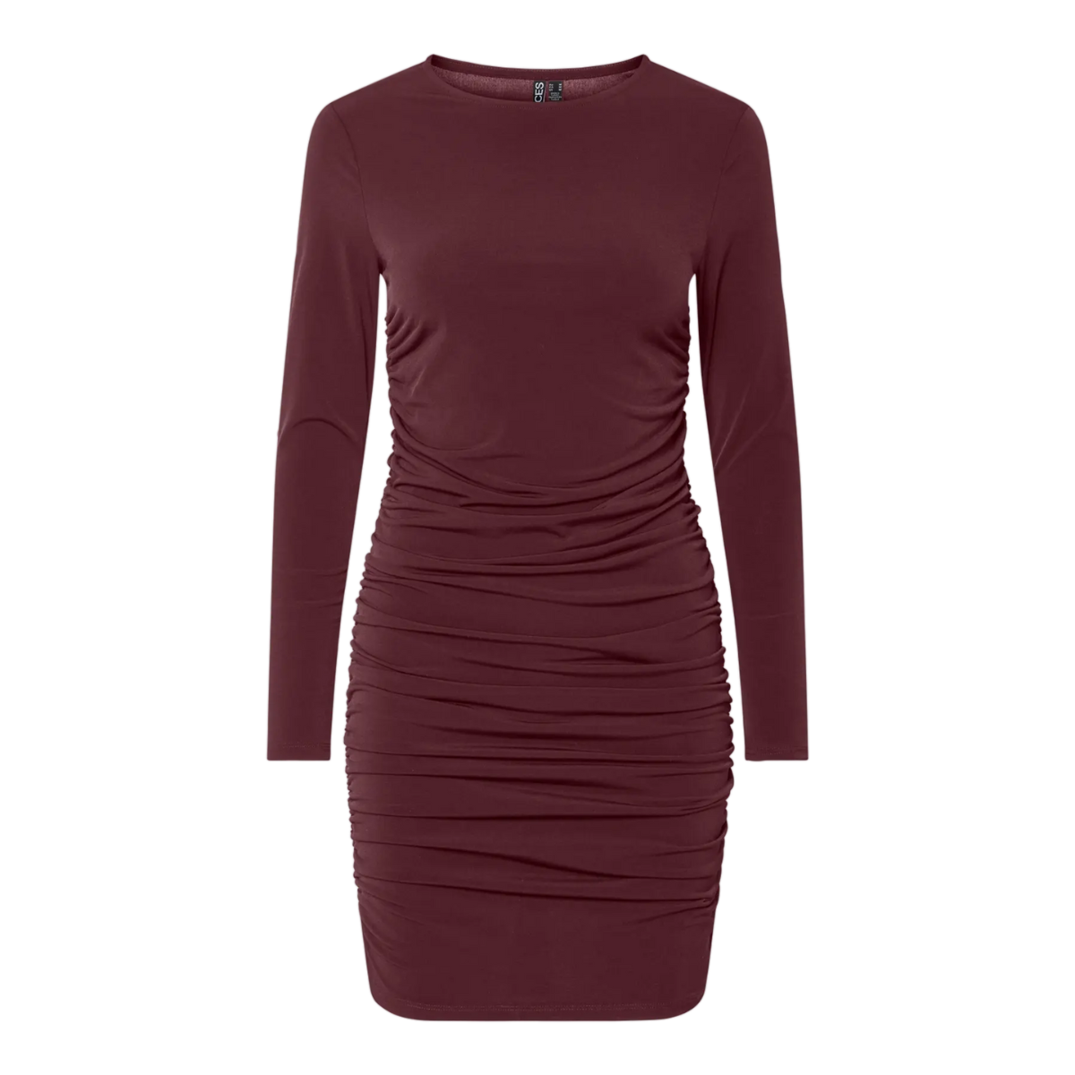 Mega flot kort kjole fra Pieces. Kjolen har en rund hals, lange ærmer, en tætsiddende pasform samt rynke-effekter i siderne.