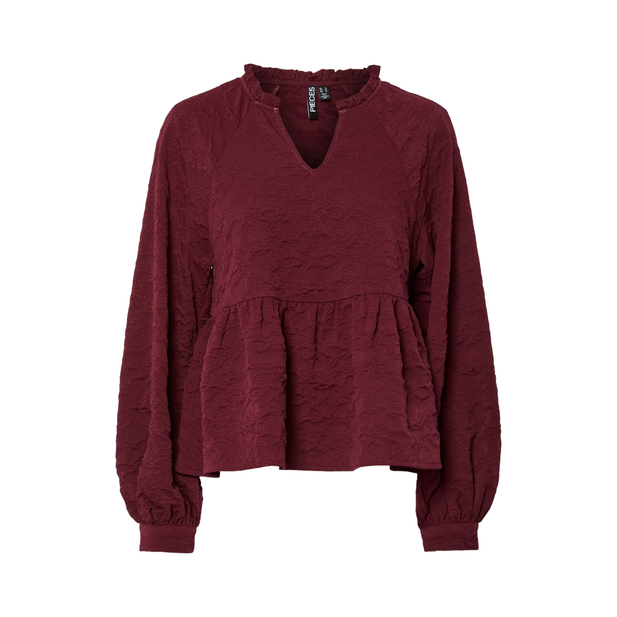Sød top fra Pieces. Toppen har V-udskæring, lange ærmer samt flæsedetaljer.
