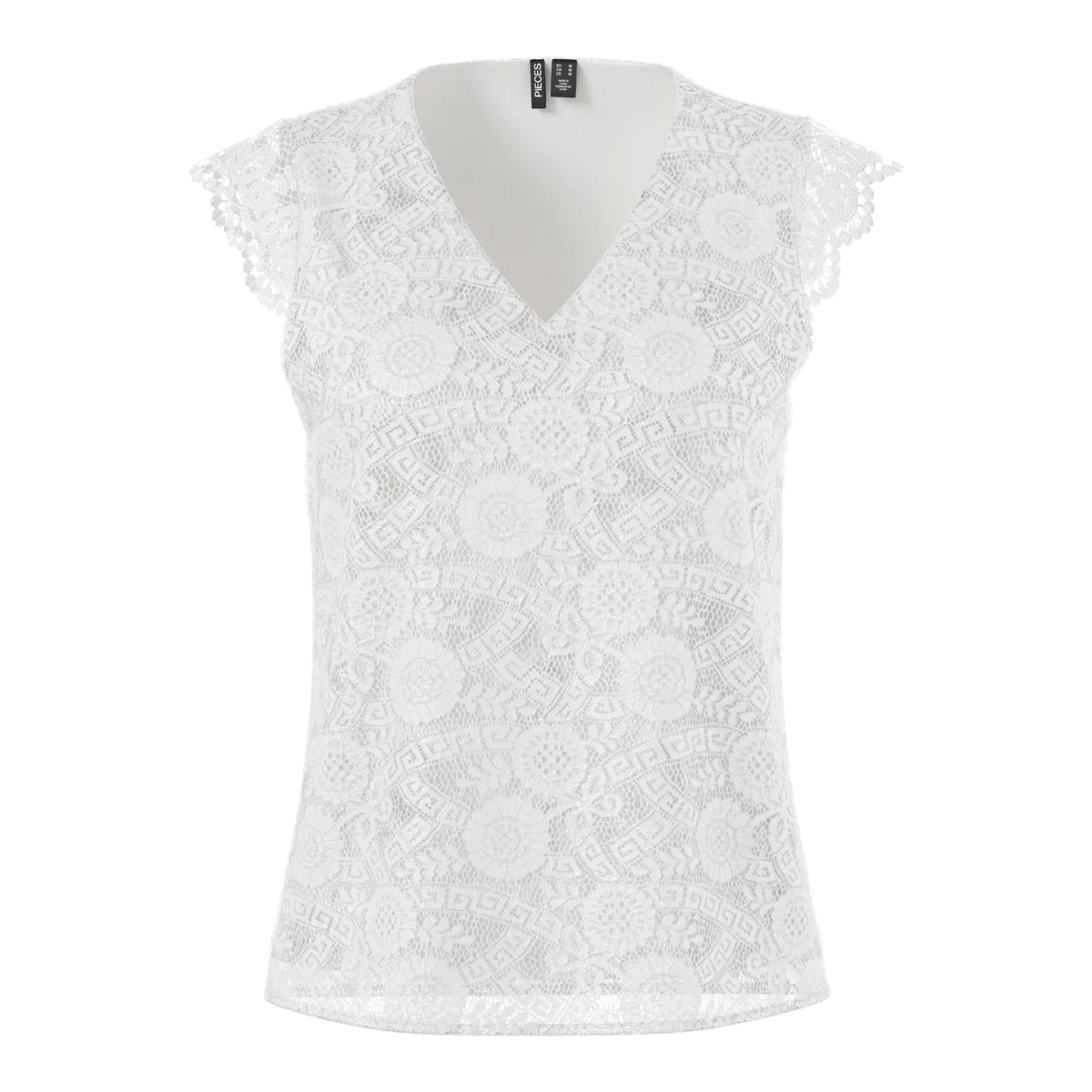 Super sød blonde top fra Pieces. Toppen har V-udskæring og en smuk blonde med et lag under så den ikke er gennemsigtig.