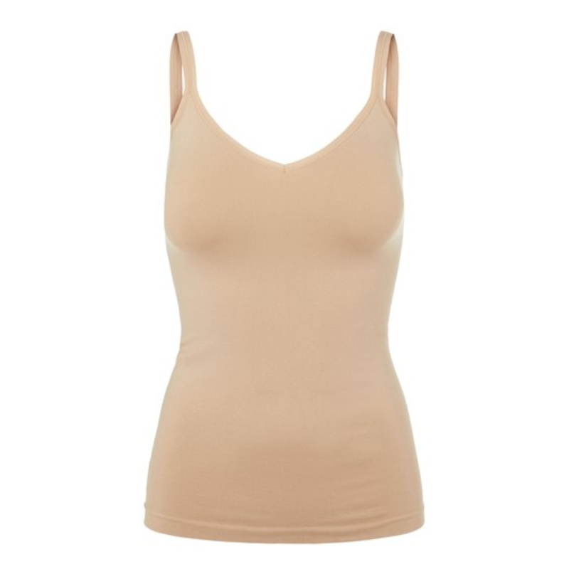 Fin undertrøje af lækkert materiale. Denne har en lille v-udskæring, tynde stropper og er tætsiddende. Materiale: 74% Genanvendt nylon 21% Polyamide 5% Elastan Vaskeanvisning: Vaskes ved 30 grader