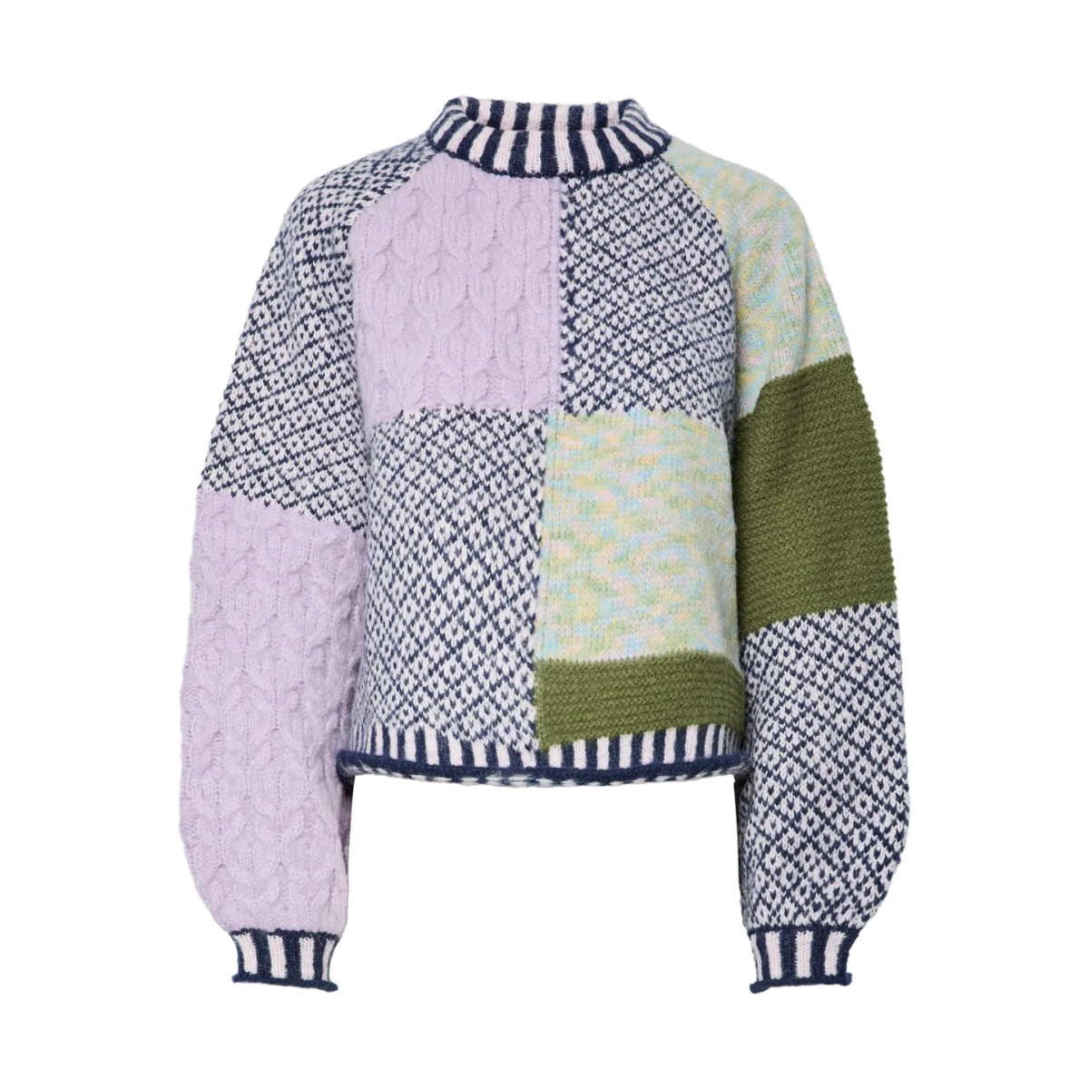 Fantastisk strik fra Pieces. Strikken er i et cool patchwork-look i forskellige farver og mønstre. Derudover har går den lidt op i halsen samt er dejlig varm.