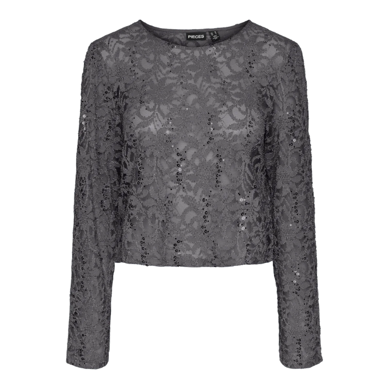 Cool top med palietter, fra Pieces. Materiale: 55% Genanvendt polyester. 45% Polyester. Vaskeanvisning: Vaskes ved 30 grader. Dette produkt er produceret mere bæredygtigt og med ekstra omtanke for miljøet.