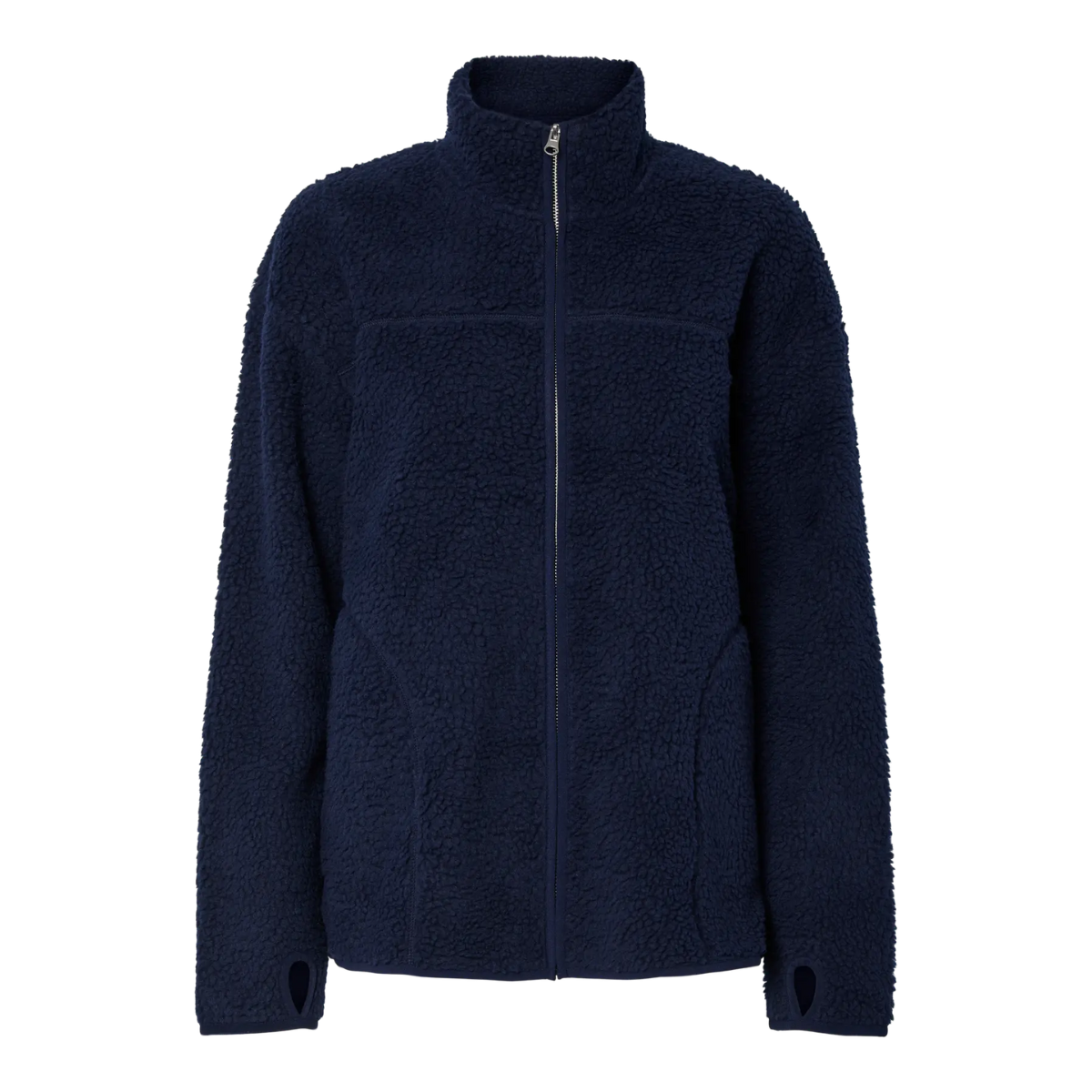 Dejlig jakke fra Pieces. Jakken går lidt op i halsen, lukkes med lynlås, har to lommer samt et hul til tommelfingeren nederst på ærmet.
