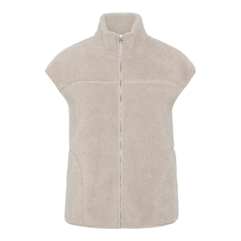 Super trendy teddyvest med høj krave, lynlås og sidelommer.