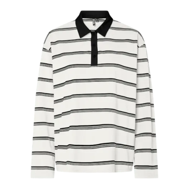 Super fed polo fra Pieces. Poloen er oversized, har skjortekrave og lange ærmer. Materiale: 100% Bomuld. Vaskeanvisning: Vaskes ved 30 grader.