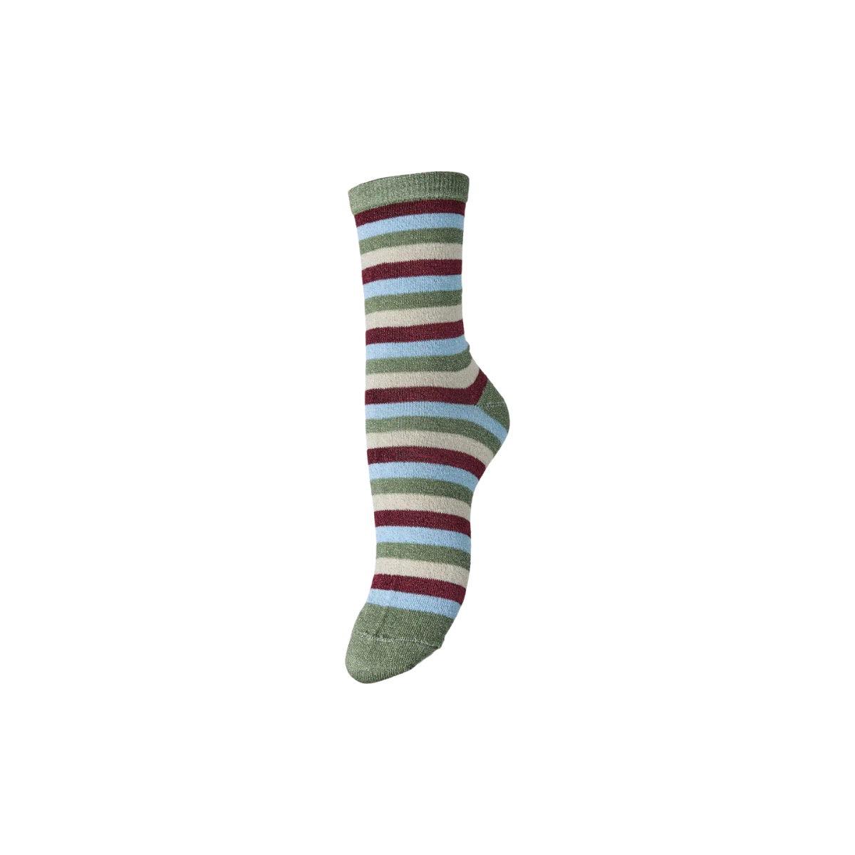Cool bomuldsstrømper med glimmer og striber. Materiale: 64% Bomuld. 22% Polyamid. 11% Metallic fibre. 3% Elastan. Vaskeanvisning Vaskes ved 40 grader.