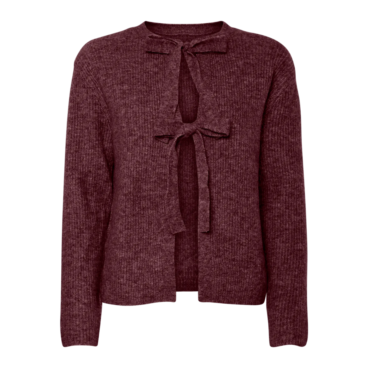 Skøn cardigan fra Pieces. Cardiganen har rund halsudskæring og lukkes med to bindebånd som en sløjfe.