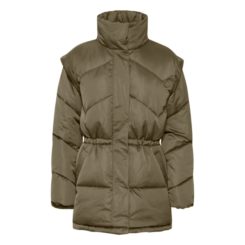 Mega lækker varm jakke fra Pulz. Jakken har høj krave, to lommer fortil samt både knap- og lynlåslukning.