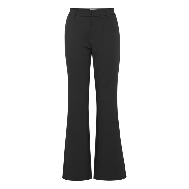 Fine højtaljede bukser fra Pulz. Bukserne sidder til ved lår og knæet derefter går de ud i trompet. Derudover har de bæltestropper, to snydelommer bagpå samt to lommer foran.
