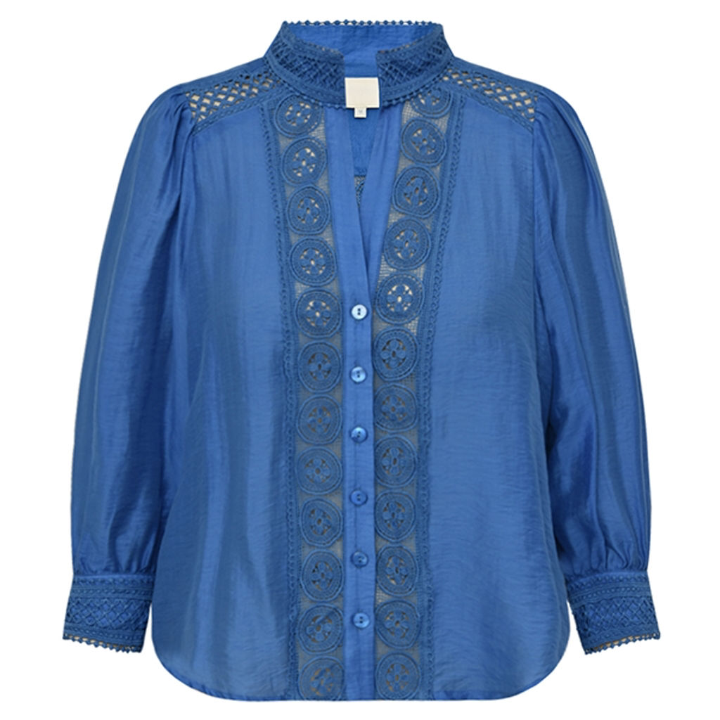 Smuk skjorte fra Gossia. Den er i en let skinnende kvalitet, har fine blondedetaljer og lette pufærmer samt en masse fine detaljer.