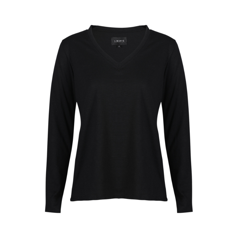 Lækker, basic langærmet t-shirt fra Liberté. T-shirten har V-udskæring og er normal i pasformen. Materiale: 65% Polyester. 35% Bomuld. Vaskeanvisning: Vaskes ved 30 grader.