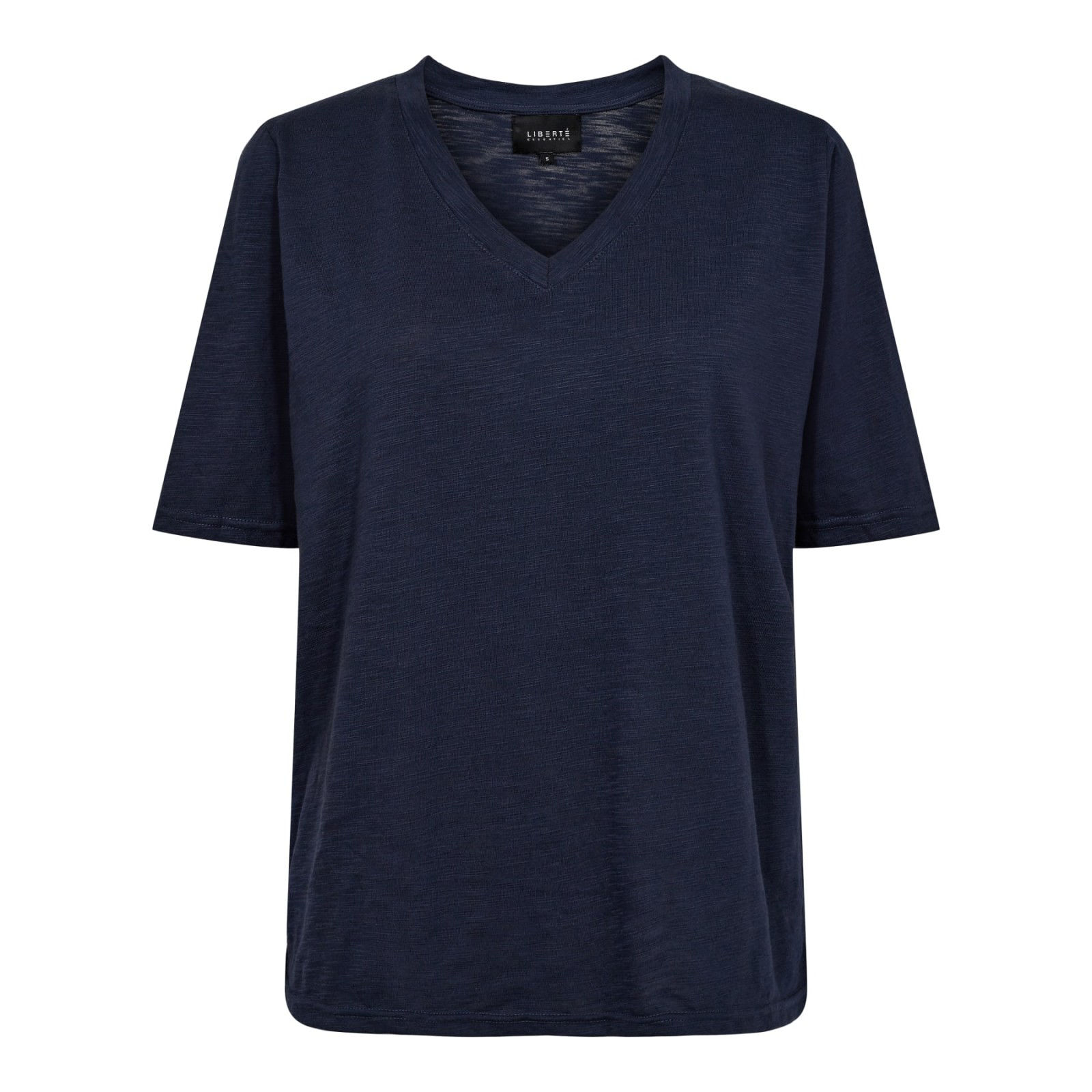 Enkel og behagelig t-shirt fra Liberté. Denne t-shirt er løstsiddende og har V-udskæring.