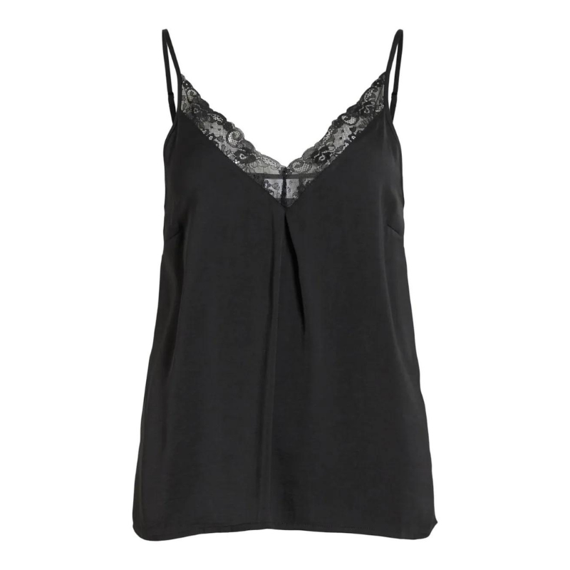 Sød top fra Vila. Toppen har fine blonder ved halsudskæringen, tynde justerbare stropper og løs pasform.