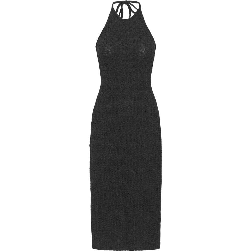Sort tætsiddende kjole med stræk og halterneck. Kjolen har et chic look med åben ryg og bindes i nakken.