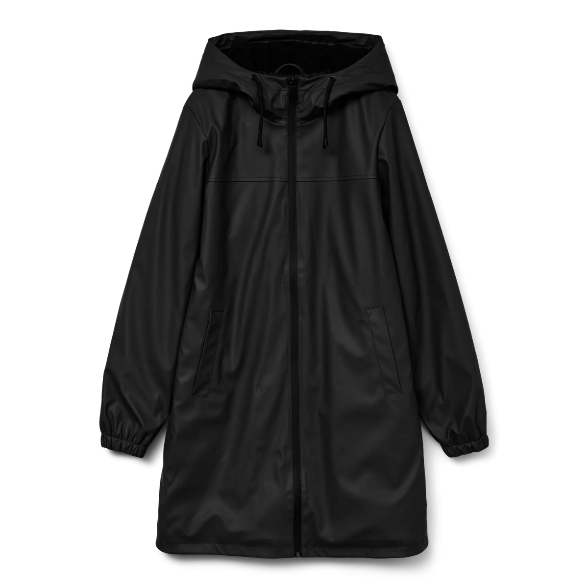 Smart og funktionel regnjakke, fra Vero Moda. Jakken har hætte med justerbare snore og lukkes med lynlås. Den er designet med to lommer fortil samt har en dejlig og varm polyesterforing.