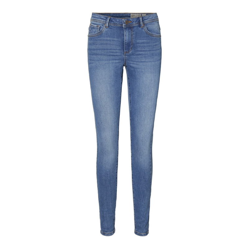 Basic og smarte jeans i en fed blå farve. Buksen lukkes med knap og lynlås, og så er den midttaljet.