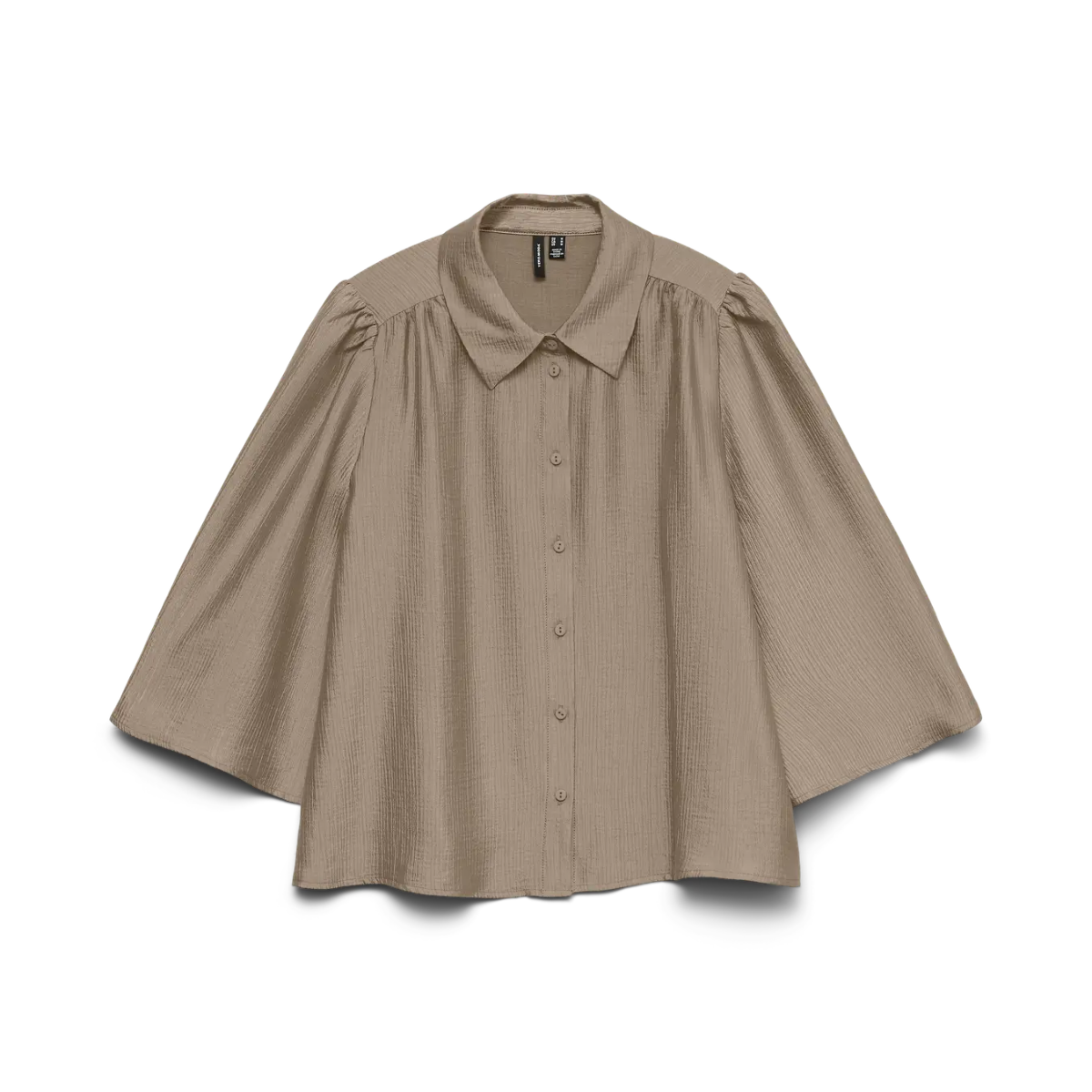 Lækker skjorte fra Vero Moda, i et let materiale. Skjorten har klassisk krave, korte brede ærmer, er gennemknappet samt har en masse fine detaljer.