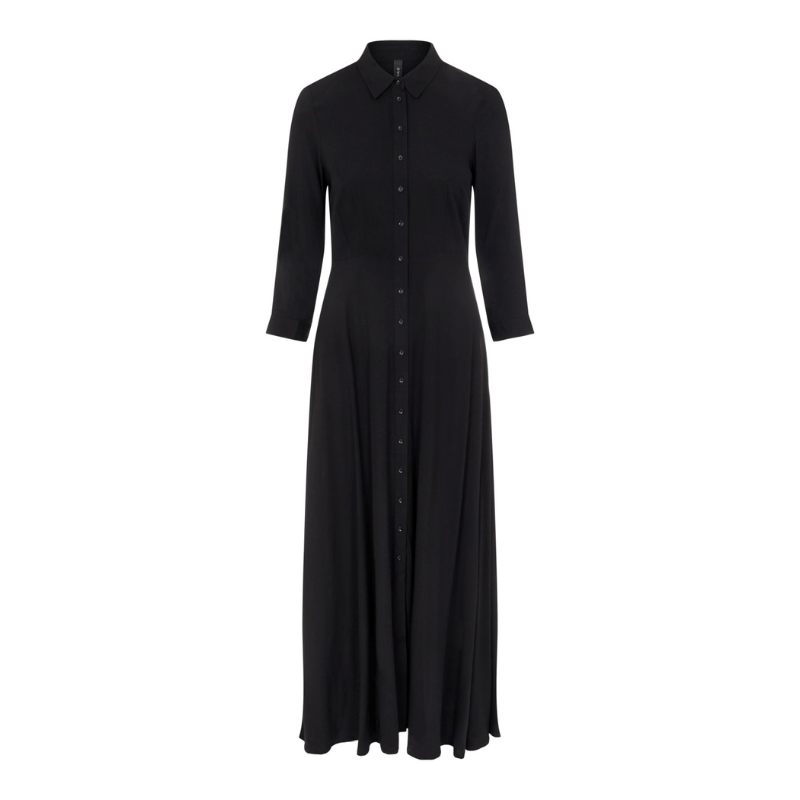 Fineste gennemknappet kjole med krave og A-shape. Kjolen er let og blød i sin viskose materiale. Materiale: 100% viskose Vaskeanvisning: Vaskes ved 30 grader