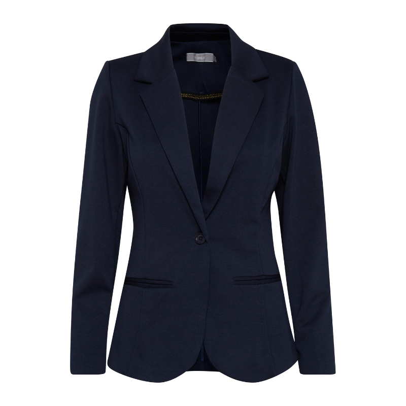 Skøn blazer med pyntelommer, krave og én knap til lukning. Blazeren pasform er tætsiddende.
